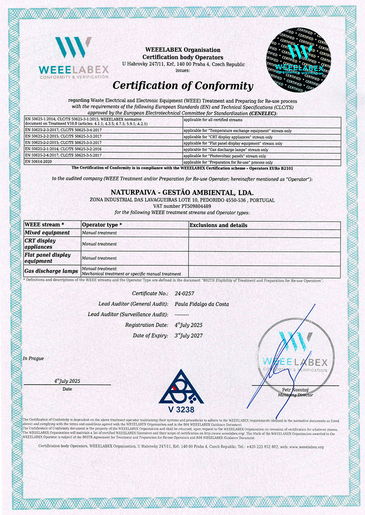 Esta certificación garantiza que Movilex aplica procesos controlados y auditados, orientados a maximizar la recuperación de materiales, minimizar el impacto ambiental y asegurar el cumplimiento de la normativa europea en materia de gestión de residuos electrónicos.